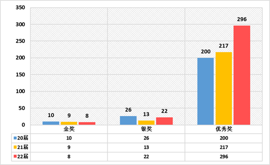 其中廣東省共計獲得金獎8項,銀獎22項,優(yōu)秀獎296項。